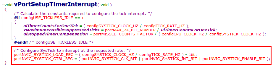 至此,SysTick即可按照configTICK_RATE_HZ的设置产生中断